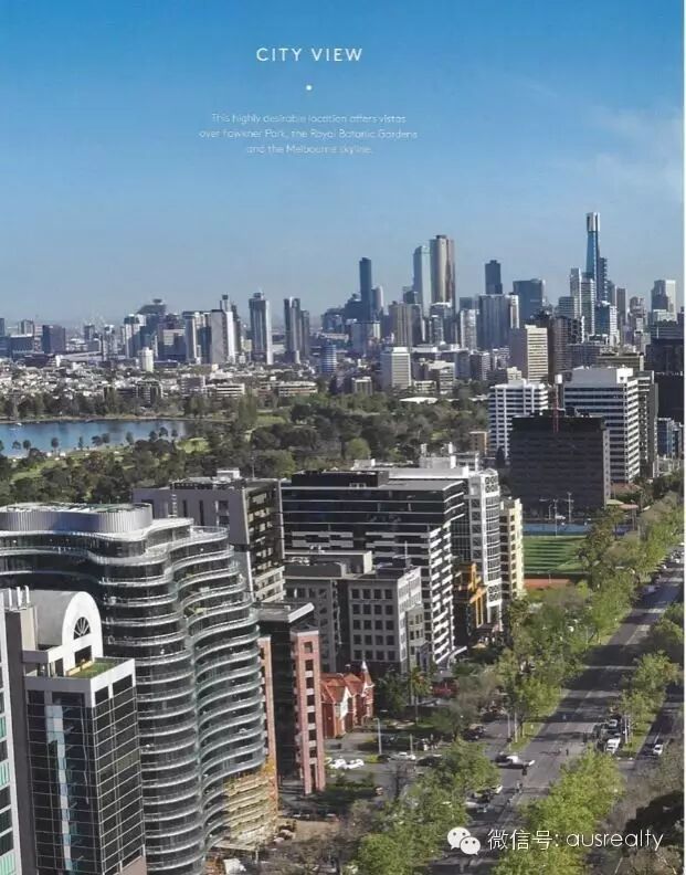 This highly desirable location offers vistas over Fawkner Park, the Royal Botanic Gardens and the Melbourne skyline. Residences to the west experience scenes of Albert Park Lake and beyond with spectacular sunsets over Port Phillip Bay.